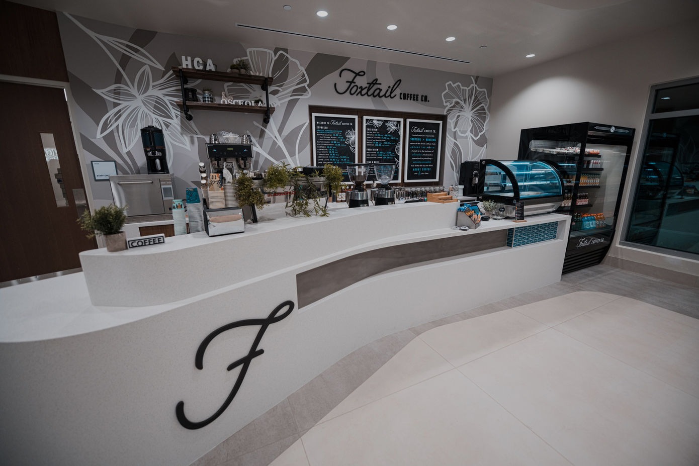 Foxtail Coffee, HCA is a café in partnership with The Hospital Corporation of America, one of the nation's leading providers of healthcare services. This cafe is located in the lobby of the HCA Osceola Hospital location and offers a full service coffee bar, grab-n-go snacks, and select pastries from our exclusive vendors.