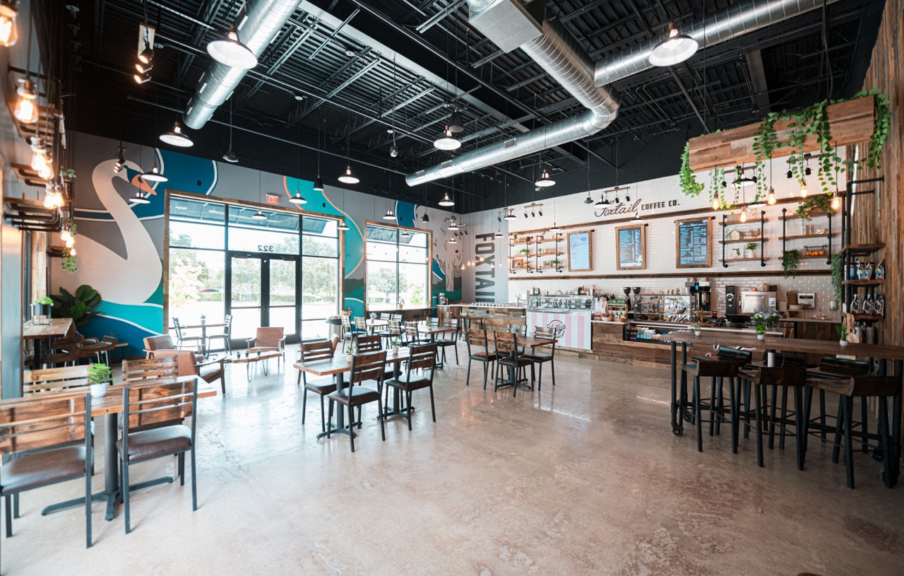Welcome to the first Foxtail Coffee location in Lakeland, Florida! Lakeland is known as the city of lakes due to having a whopping 38 lakes in the area! The city is also the spring training home for the Detroit Tigers baseball team, and the downtown area is a major center for aviation, hosting yearly Aerospace Expos. Perhaps the most unique fact about this charming town is that it was dubbed 'Swan City' due to the pair of swans gifted by Queen Elizabeth II, which many of the current swans descend from! This gorgeous new shop is situated right between Lake Wire and Bonnet Springs Park, a gorgeous botanical garden which helped inspire the stunning mural you'll find inside the location. In addition to our wide array of craft drink and food offerings, this shop also features a Kelly's ice cream counter, making it the perfect stop to grab a cup or cone and go explore the nature-filled, vibrant area!