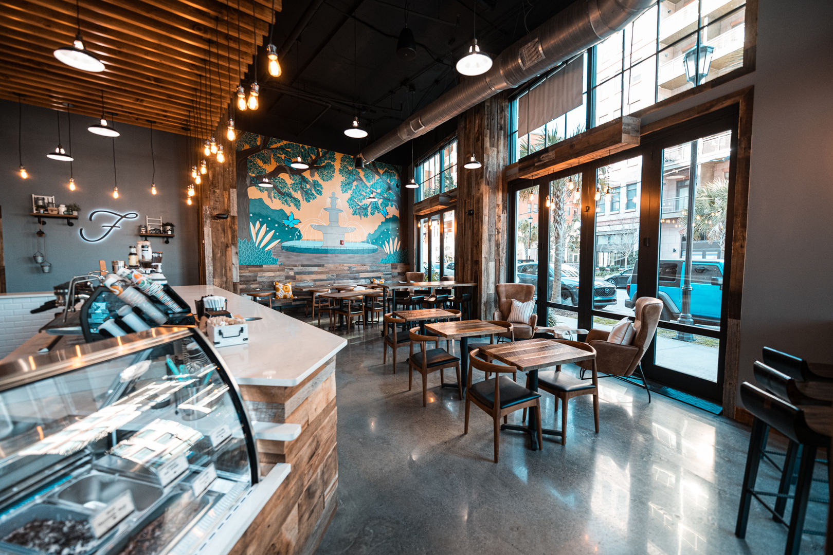 Welcome to our third Foxtail Coffee in Georgia! This gorgeous shop resides in a mixed-use commercial and residential complex called Olmstead in Riverside. It is located in the heart of the historic city of Savannah, known for its beautiful squares, architecture, and Southern charm. This exciting location serves beer and wine alongside our craft beverage and food offeirngs, making it the perfect stop for a cozy and elevated breakfast or an evening socializing with loved ones. This Foxtail also features our Foxtail Gelato program, with 10 delicious flavors that will complement 6 curated affogato pairings. We can't wait to give you the Foxtail family experience!